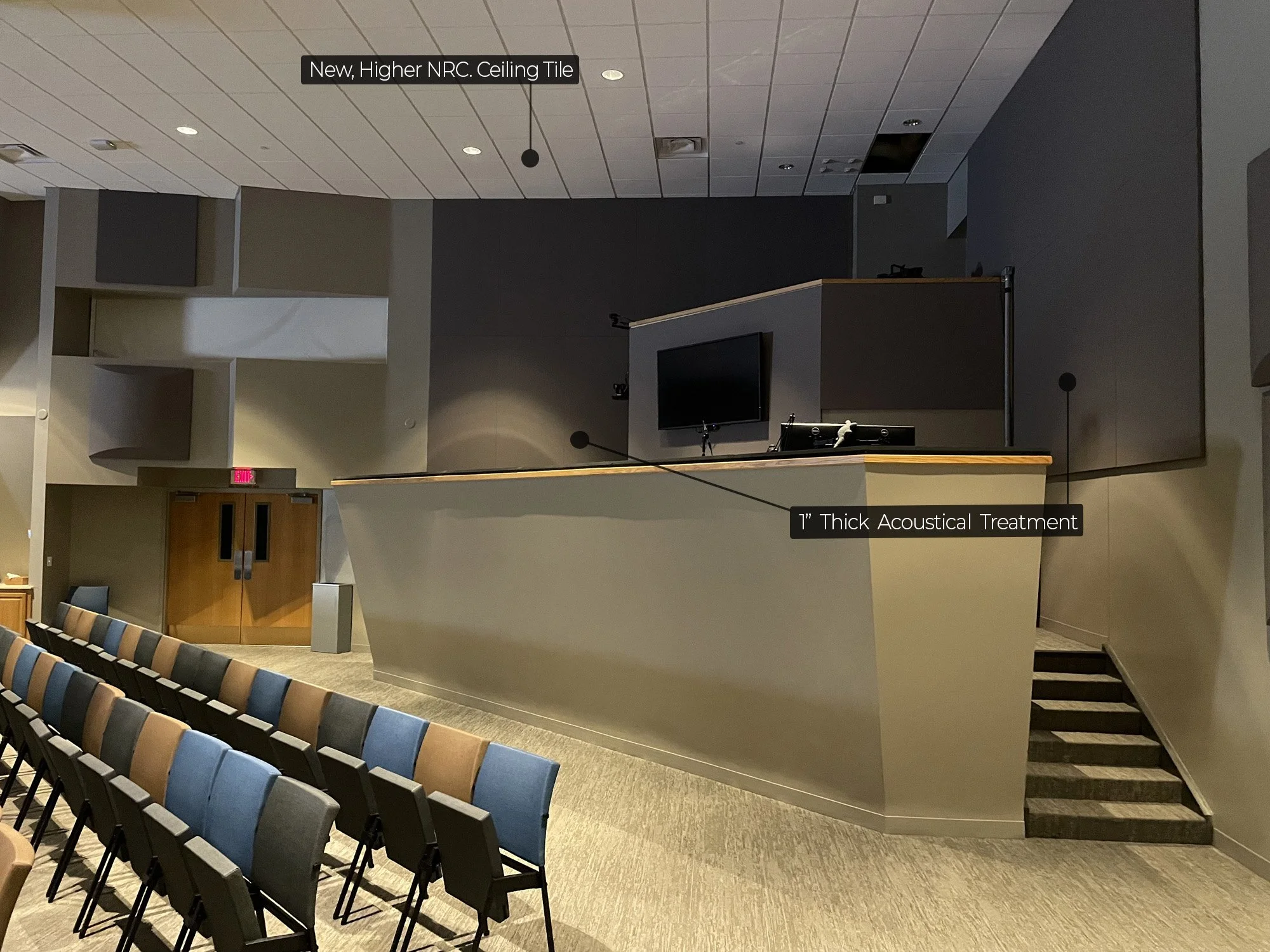 “In our campus renovation we didn’t have a large budget. We decided to add more sound absorption and sound deflection panels, ultimately eliminating our need to update any of the audio equipment.”